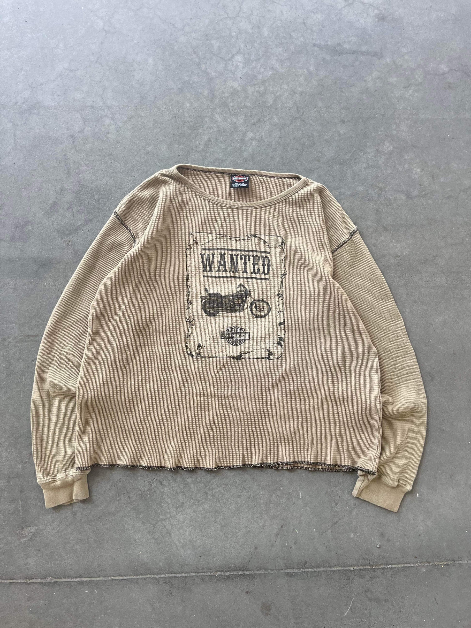 (L) Harley Davidson Waffle Knit Creme Top