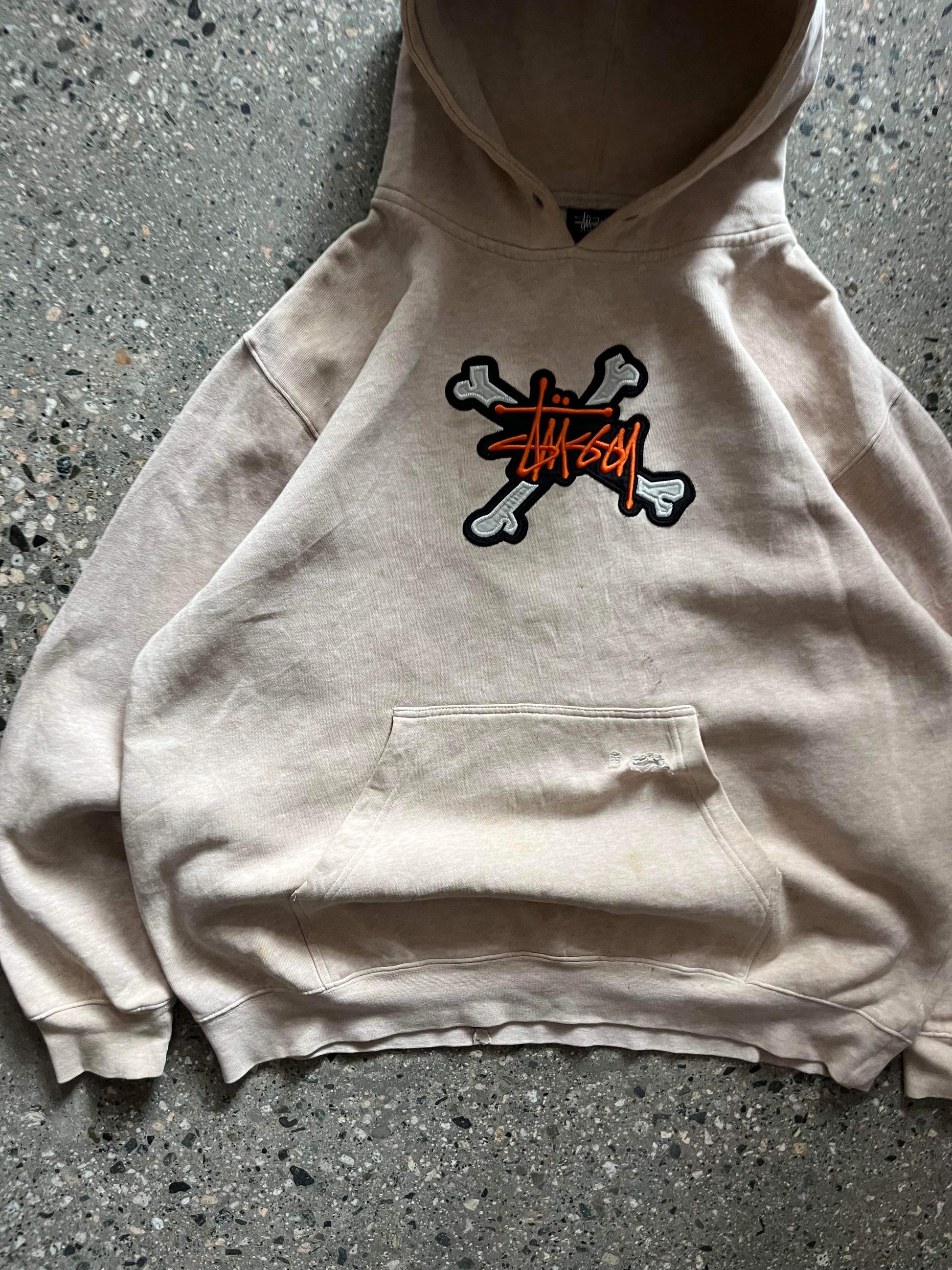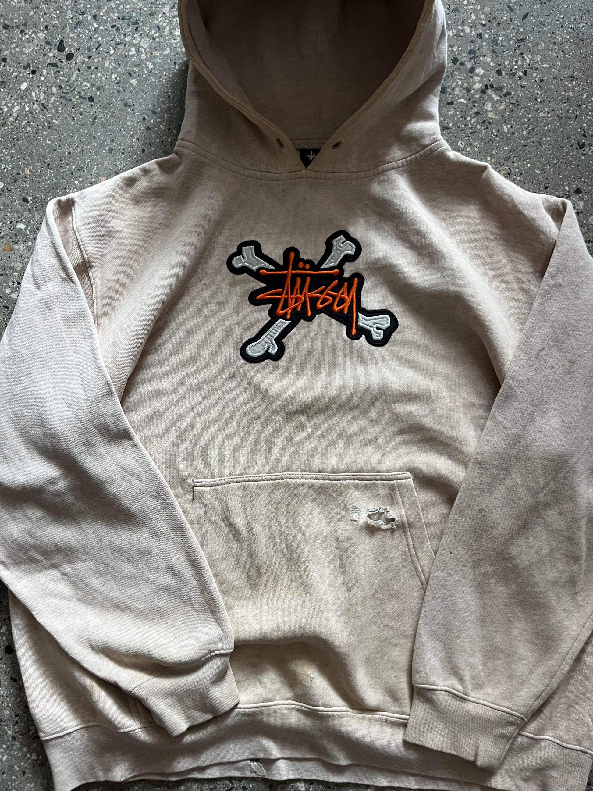 (L/XL) 90’s Stussy Distressed Bones Hoodie